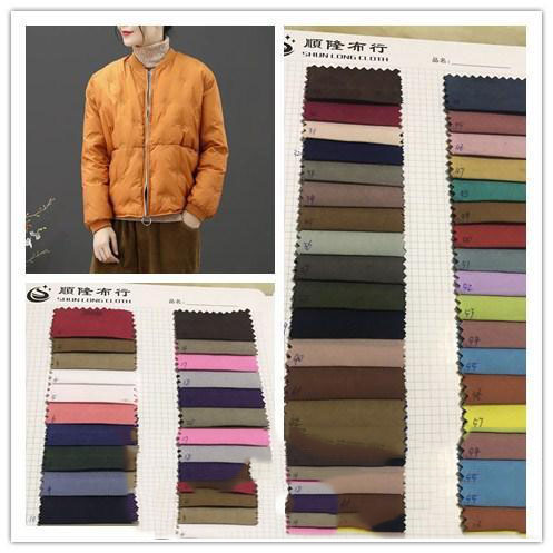 现货供应 斜纹雪花绒羽绒服外套风衣面料布娃娃公