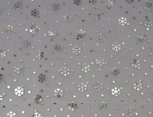 供应欧根纱烫金烫银 加密无光欧根纱小雪花烫金烫银加工品