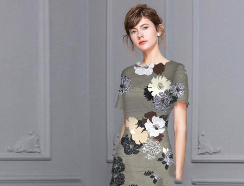 现货假捻丝喷绘印花 色泽鲜明 柔软舒适女装连衣裙